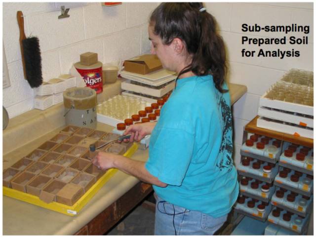 研磨好的土壤进行分装,并贴好标签,是用封口袋,美国人民用盒子,差不多,都是为进行化学检测做准备。