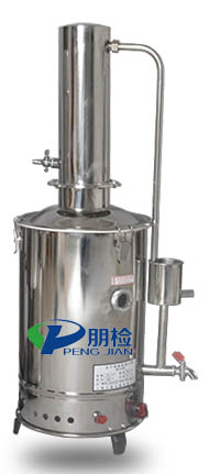 全不锈钢电热蒸馏水器主要由不锈钢蒸发锅、冷凝器、电器装置三部分组成。用电加热自来水,以蒸馏方法制取纯水。制取的蒸馏水能达到《GB/T6682-2008分析实验用水规格和试验方法》国家标准规定的三级水标准。