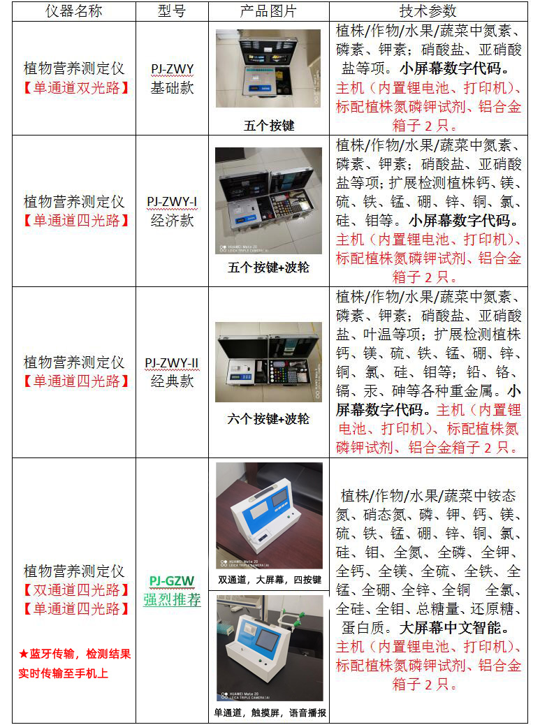 一、植物营养测定仪检测项目