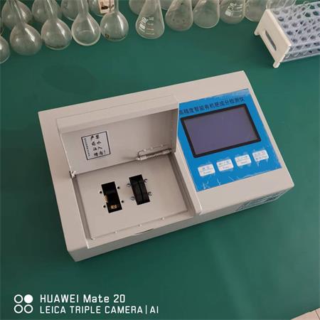 高精度智能有机肥成分检测仪,小型台式,有两个比色槽、四个按键,测试项目如下,肥料:酸解氮、硝态氮、铵态氮、尿素氮、缩二脲、全氮、有效磷、水溶磷、全磷、腐植酸、有机质、全钾、有效钾、酸碱度、含水量、肥料钙、肥料镁、肥料硫、肥料铁、肥料锰、肥料硼、肥料锌、肥料铜、肥料氯、肥料硅、肥料钼、肥料铅、肥料砷、肥料镉、肥料铬、肥料汞。