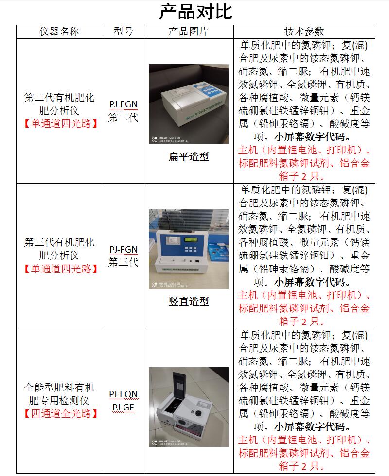 六、不同型号肥料养分速测仪的区别